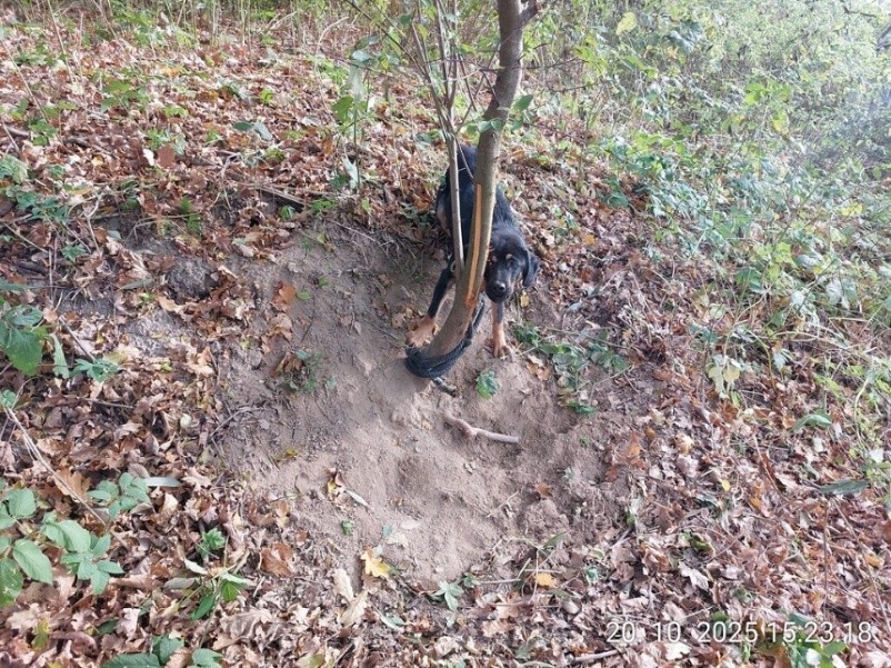 Dne 20. 10. 2025 v 15:11 hodin bylo na úřadovně Městské policie Havlíčkův Brod (dále jen MP HB) přijato oznámení, že v prostoru mezi ulicí Rozkošská a ulicí Ledečská je u stromu uvázaný menší černý pes. Na místě čekal na hlídku MP HB oznamovatel, který strážníkům ukázal strom, ke kterému byl přivázaný pes. U psa a ani v blízkém okolí se nenacházela žádná osoba, které by pes patřil. Strážníci psa odchytli a následně převezli na úřadovnu MP HB. Majitele psa se nepodařilo zjistit a u psa nebyl zjištěn ani povinný čip. Pes byl převezen do útulku v Mírovce. |